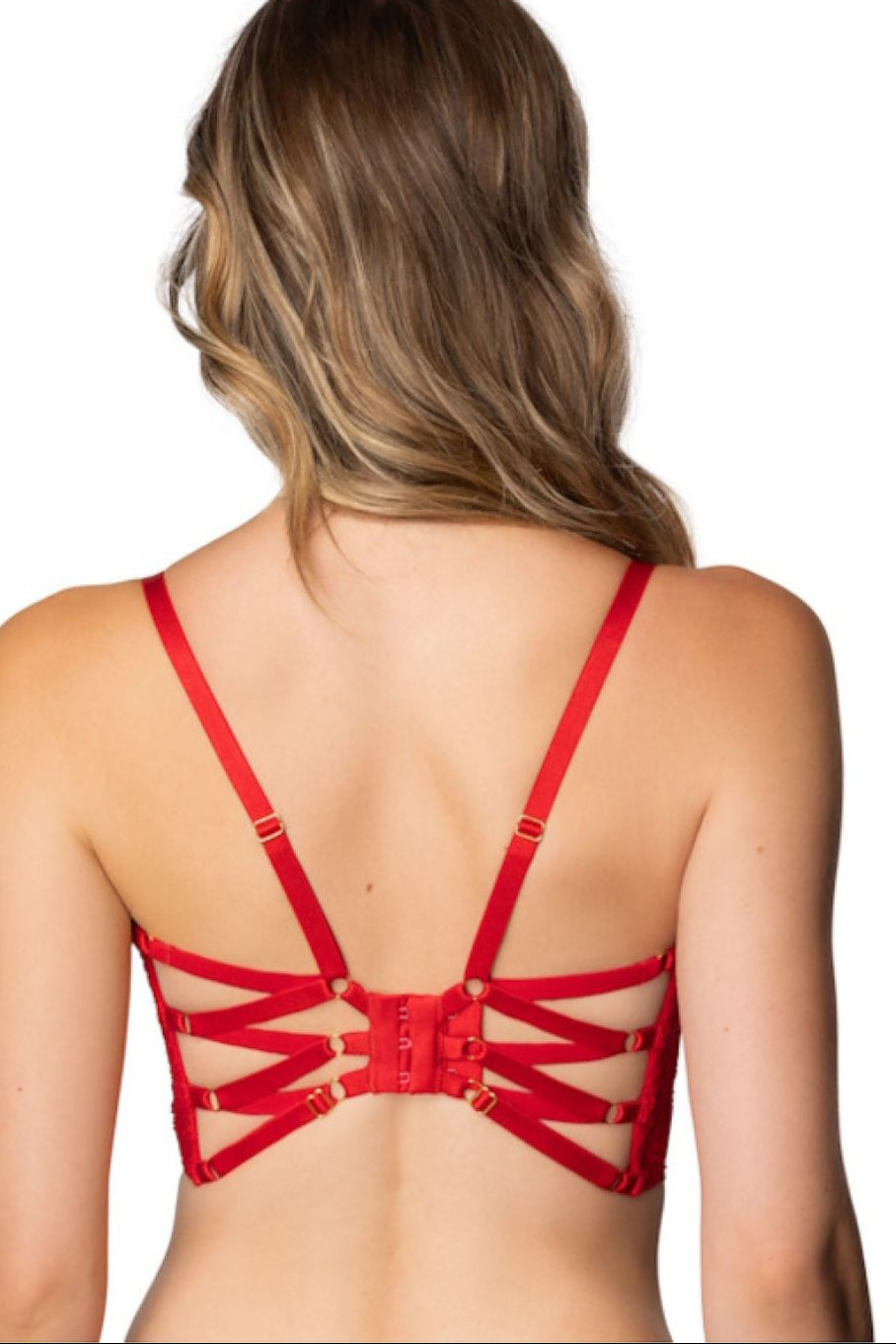 The red Estelle corset is a unique proposition for women who appreciate elegance and sensual style. Made of delicate lace with a floral pattern, it perfectly accentuates feminine curves. Semi-transparent mesh inserts add subtlety, and precise finishing ensures comfortable wear. The back of the corset is distinguished by a spectacular, decorative lacing with adjustable straps, allowing for a perfect fit to the silhouette. Additionally, the classic hook fastening provides stability and comfort while wearing. By choosing the Estelle corset, you are investing in lingerie that combines functionality, elegance, and seductive style, meeting all the expectations of a modern woman.