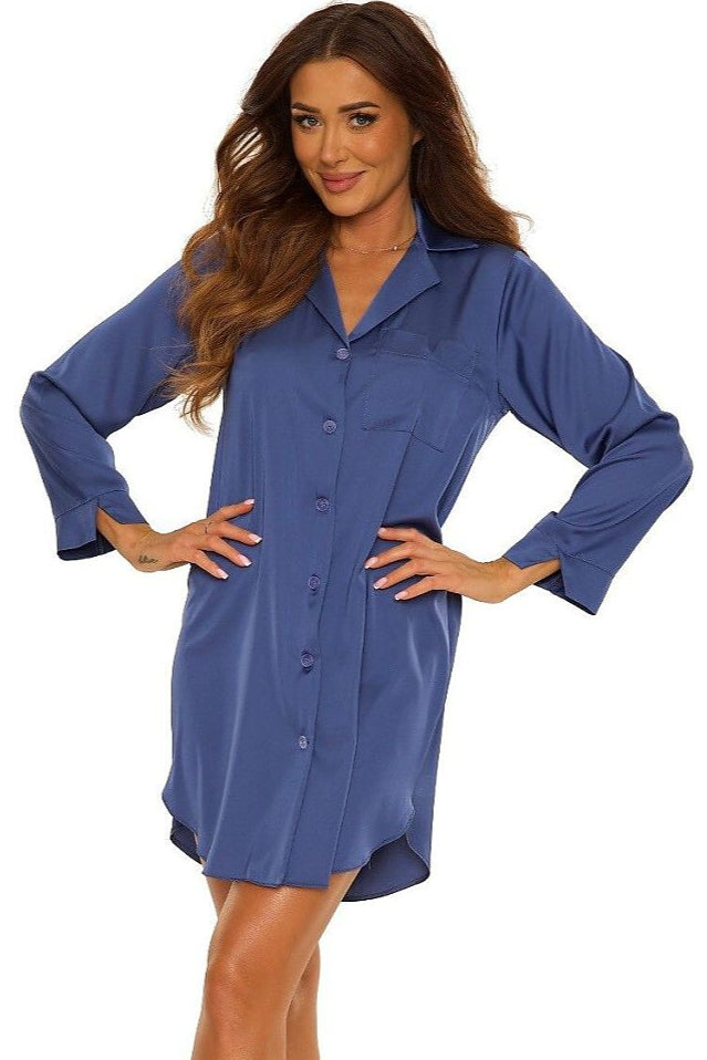 This unique nightgown is a proposal for women who value luxury and comfort. Made of elegant, shiny satin, the nightgown is soft, pleasant to the touch, and beautifully drapes. The loose, comfortable cut provides freedom of movement, and the 7/8 sleeve is practical and comfortable. The semi-circular bottom adds lightness and elegance to the nightgown. The nightgown has a pocket at chest height, perfect for small items. The button closure makes it easy to put on and take off. A satin nightgown is the perfect choice for cold nights. It will wrap you in softness and provide comfort during sleep. This nightgown is a must-have in every woman's wardrobe who values luxury and comfort. Its elegant look and practical details make it ideal for many occasions.