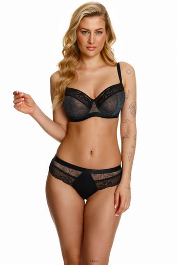 Panties in Black with Mesh Inserts with Embroidery Model 194541 by Lupo Line