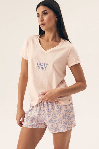 Pajama Set in Peach with Matching Printed Shorts Model 208599 by Henderson